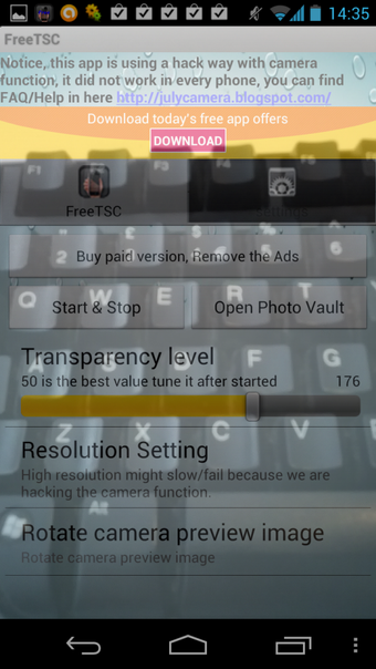 Przezroczysty obraz można nanieść nie tylko na menu aplikacjiPrzezroczysty Ekran, ale i na cały system. Obraz można wyłączyć tym samym przyciskiem, którym uruchomiliśmy go - Start&Stop. Bardzo ciekawą opcją jest możliwość robienia zrzutów ekranu z przeglądanego właśnie obrazu. Możemy je następnie "ukryć" korzystając z opcji "magic files". Będą wtedy udawały zupełnie przypadkowe zdjęcia, ale gdy zajdzie taka potrzeba można je w łatwy sposób przywrócić do oryginalnego wyglądu. Wszystkie te dziwne, szpiegowskie opcje sprawiają, że Transparent Screen zaczyna przypominać aplikację dla samego Jamesa Bonda....